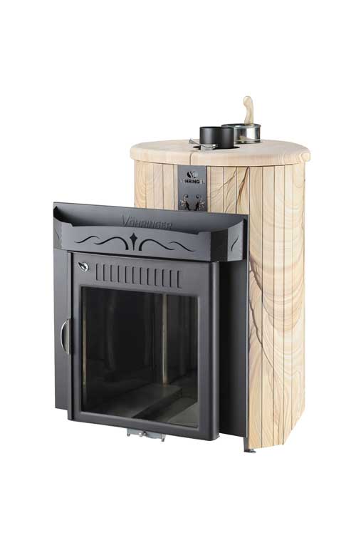 Большая масса камней, разогревается очень сильно, а дров уходит немного, благодаря полному сжиганию дымовых газов. Использование эффекта «Vortex», позволяет извлечь всю энергию и направить её на нагрев большого количества камней. Ферингер, это печь для Русской Бани, она качественно прогреет как маленькую, так и самую большую парную.