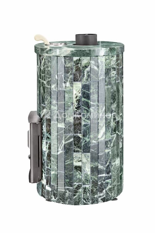 Облицовка печи – ламели из натурального камня, установленные вокруг всего корпуса. Камень блокирует распространение инфракрасного излучения, защищает парильщиков от случайного прикосновения к раскаленному металлу топки. Производство ламелей ведется по собственной запатентованной технологии завода Vöhringer.