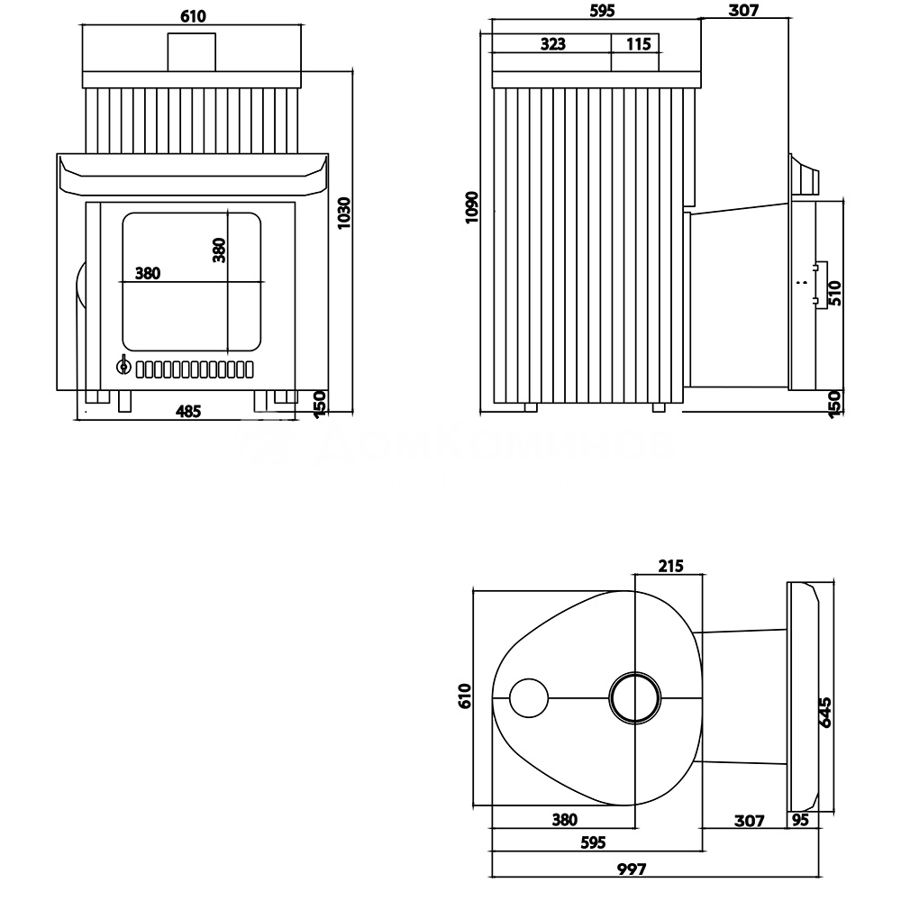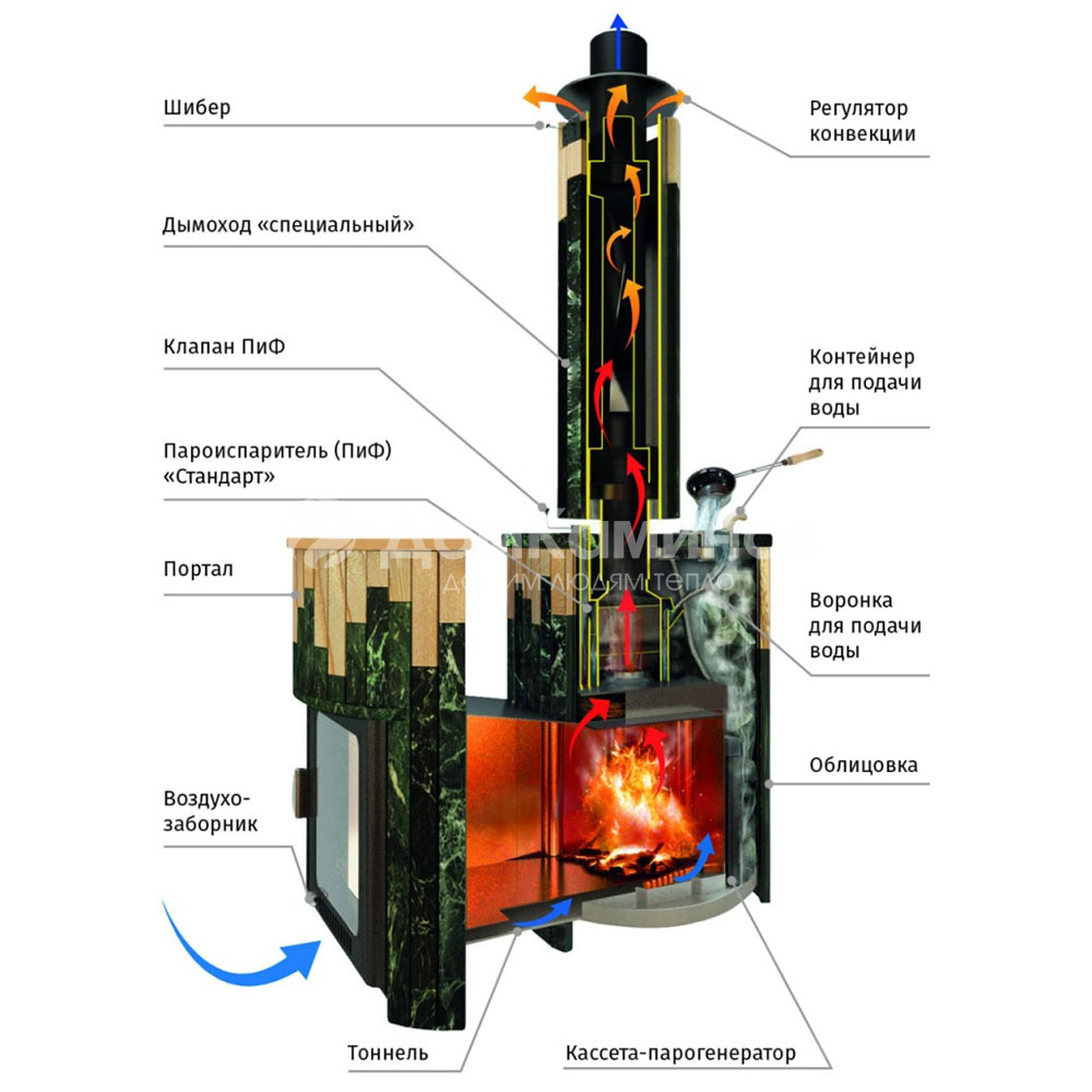 Описание Дровяная печь Ферингер Макси ПФ в облицовке Змеевик наборный, до 38 м³Комплектация: