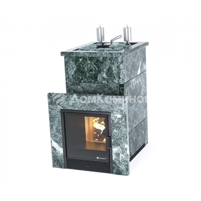 С терморегулирующей задвижкой, позволяющей максимально рационально использовать тепловую энергию и разогревать камни до температур 550-650 °C.