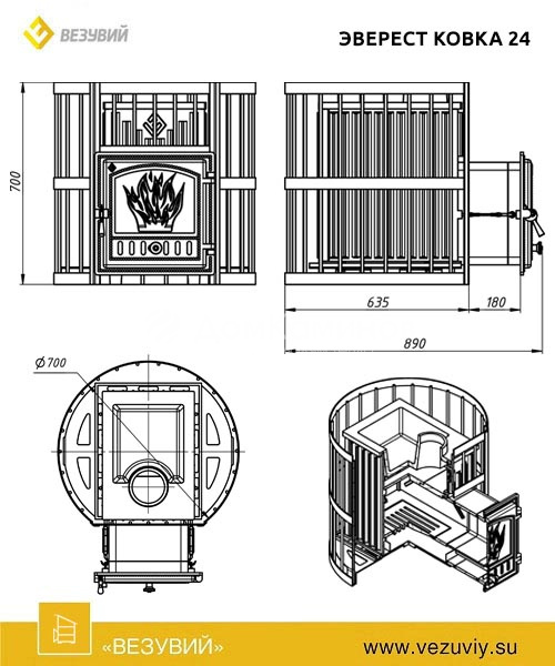 Печь для бани из чугуна Эверест Ковка 24 (280) сетка