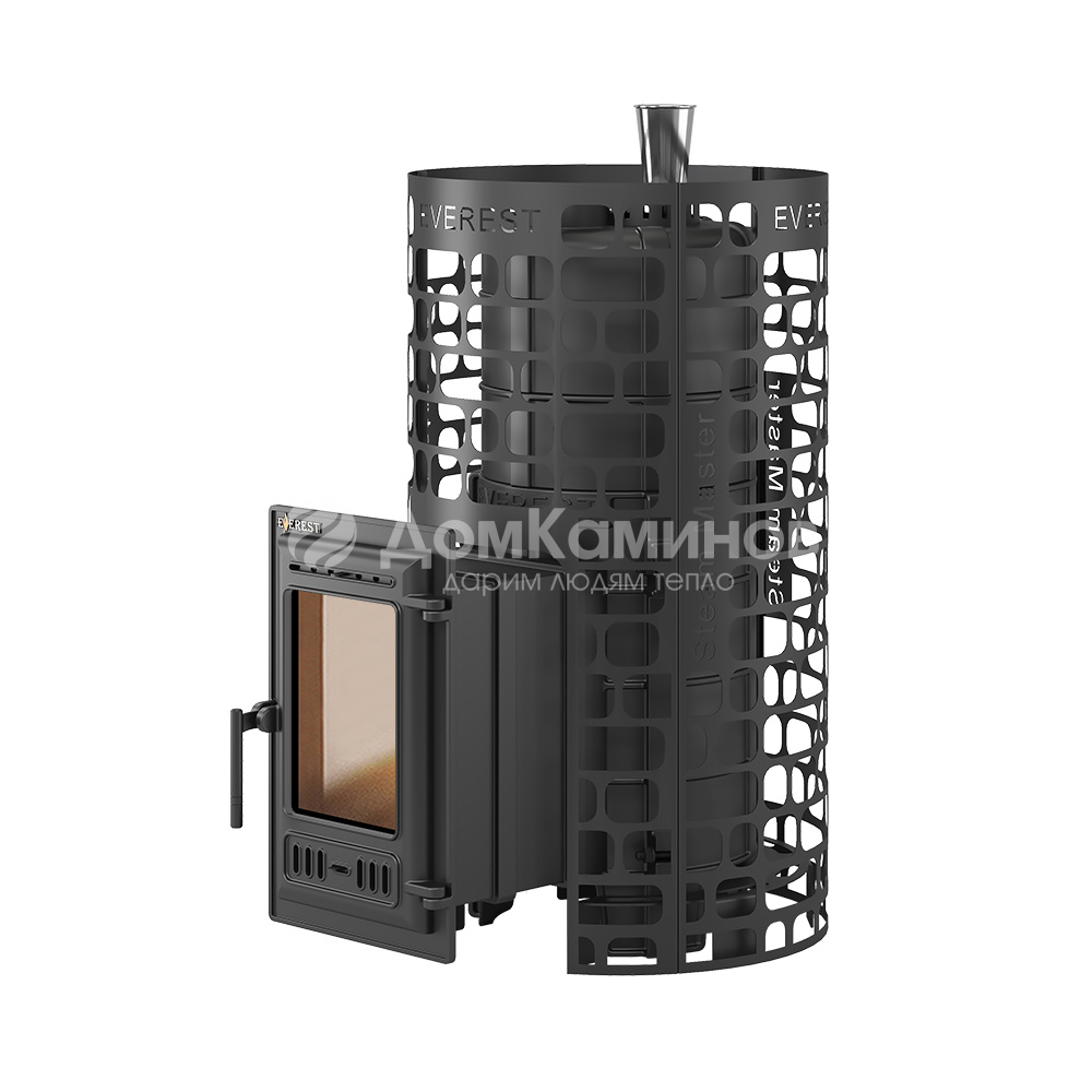 Форма каменки обеспечивает максимальное снятие энергии с горящих в топке дров. Объём каменки рассчитан на размещение 45-50 кг камней для бани. Выход пара происходит через верхнюю крышку с отверстиями.