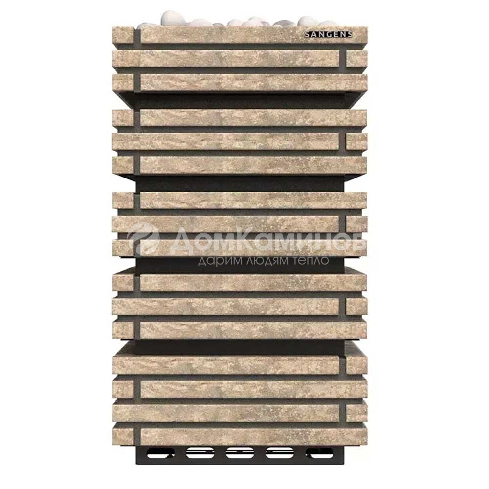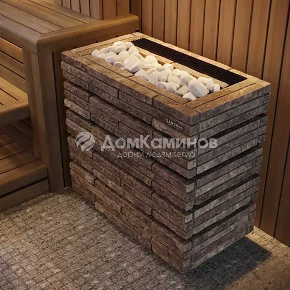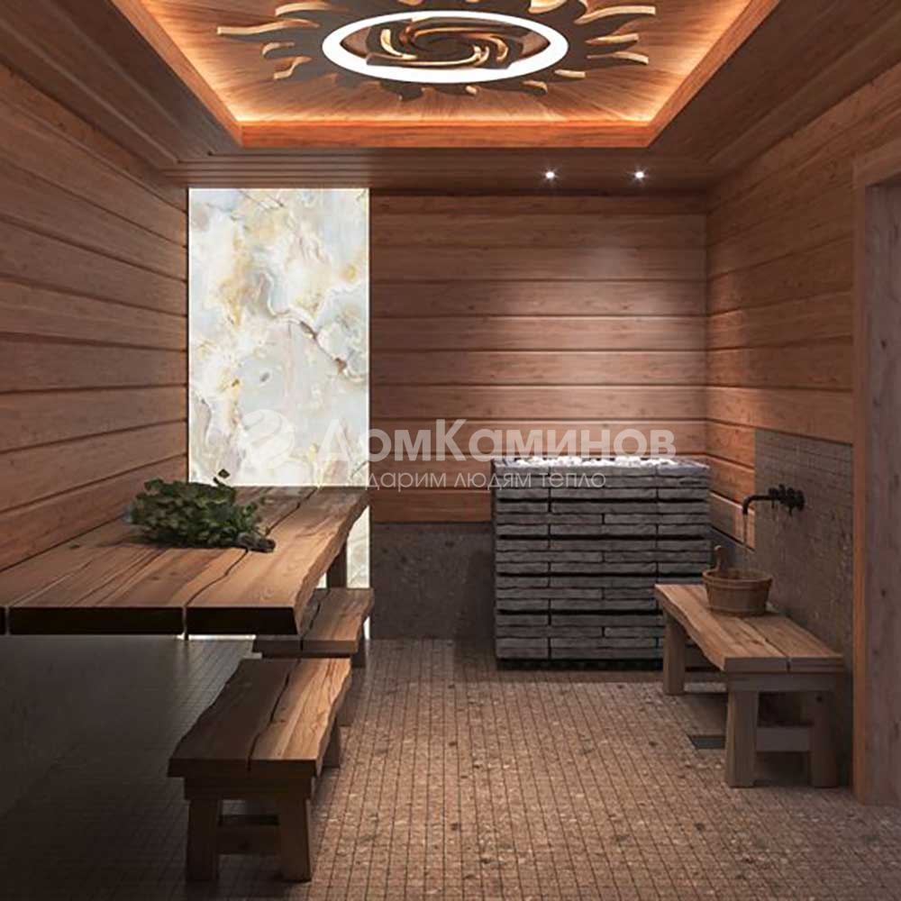 В печи 2 источника тепла: конвектор для нагрева воздуха и закрытая каменка с камнями для получения пара. Температура в закрытой каменке 550 градусов. Вы поддаёте воду, а температура всегда стабильна, всегда готовый пар в одном режиме. Управление печью с помощью пульта по каналу Bluetooth и мобильного приложения.