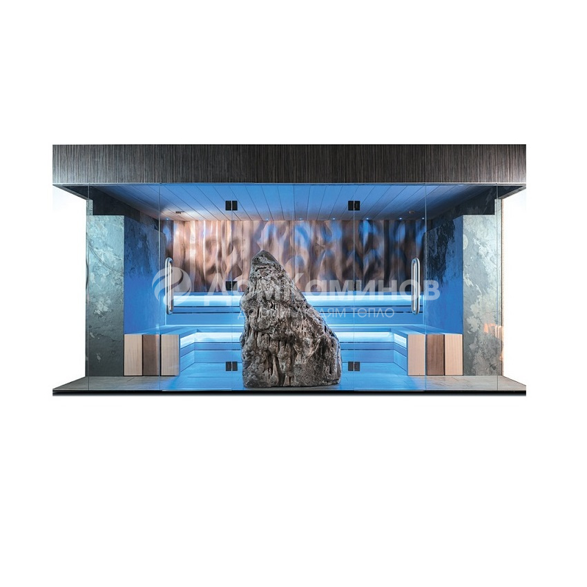 Venus – эксклюзивная сауна-кабина от производителя Alpha Industries, Бельгия. Необычные материалы, плавные линии, открытый стеклянный фасад, все это притягивает внимание и выделяет сауну Venus среди множества готовых решений. Задняя стенка выполнена из 3D панелей канадского кедра по технологии разработанной на производстве Alpha, толщиной от 10 до 30 см. Неровности текстуры дерева, впадины, цветовые переходы и игра с освещением, все это создает совершенно невероятное впечатление и ощущения. Сауна Venus – является ярким воплощением современного европейского строительного стиля, в котором применяются только простые и понятные материалы, и конструкции. Плавные линии кедра, натуральный рисунок на камне, на контрасте потолки и полог из светлого абаша – продумана каждая деталь. Для того, чтобы не смещать акцент на печь, в этой сауне используются 2 печи EOS 46 U на12,0 кВт, которые монтируются за фальшь стенкой.