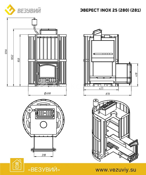 Все печи Эверест INOX снаружи окрашены термостойкой краской для защиты от внешних повреждений. Краска полностью набирает свои свойства после первой протопки печи и нагрева стенок в течение 45-50 минут. Печи Эверест INOX спроектированы для использования в режиме повышенной активности (парение более 5 часов подряд, парение 3-4 раза в неделю).