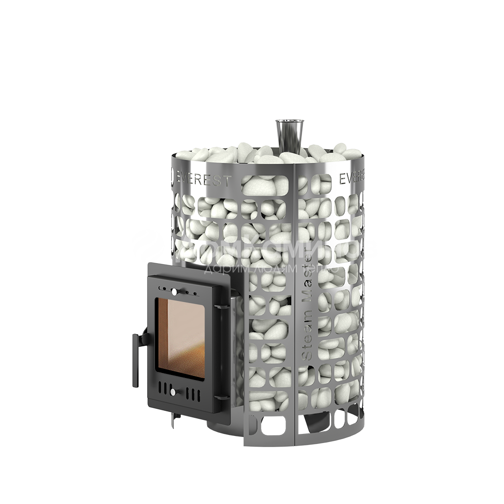 Внешний тепловой контур образован открытой каменкой в виде цилиндрической сетки, вмещающей в себя ок. 100 кг камней. Сетка сделана из стали, в новом минималистичном дизайне EVEREST.