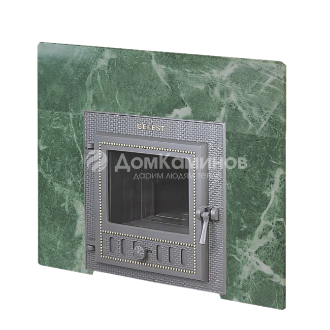 Декоративный мини-портал предназначен для противопожарного и декоративного оформления топочного портала со стороны комнаты отдыха.Изготавливается из природного камня змеевик и собирается на металлические крепления.