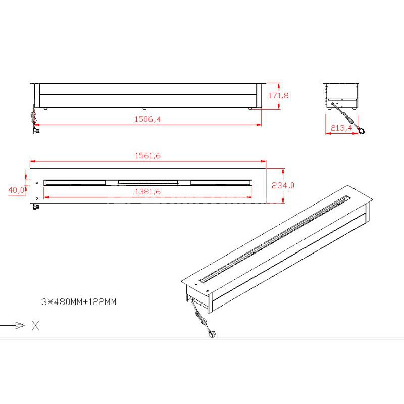 Встраиваемые В*Ш*Г: 175*1505*215 мм