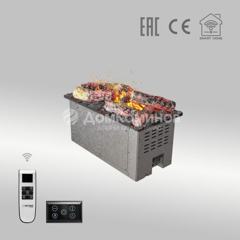 Электрокамин оснащен пультом дистанционного управления. Вы можете на расстоянии регулировать мощность обогрева, включать или выключать устройство. В некоторых моделях можно управлять подсветкой очага, яркостью и высотой языков «пламени».