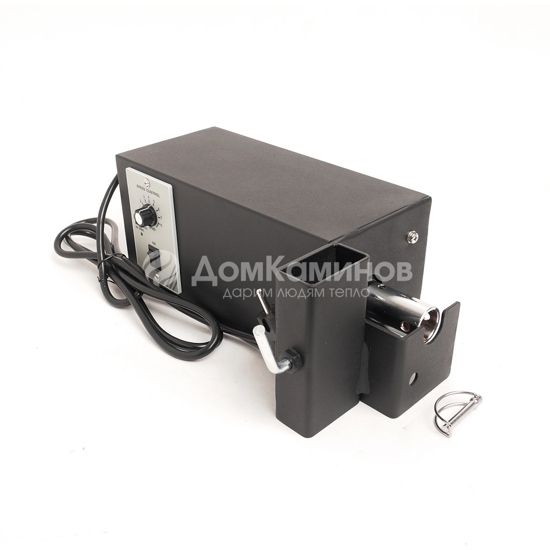 Электромотор для жарки на вертеле. Имеет прямой привод. Встроенный охлаждающий вентилятор для предотвращения перегрева. Направление вращения - по часовой стрелке. Быстросъемный штифт, облегчающий крепление шампура. Регулировка скорости вращения.