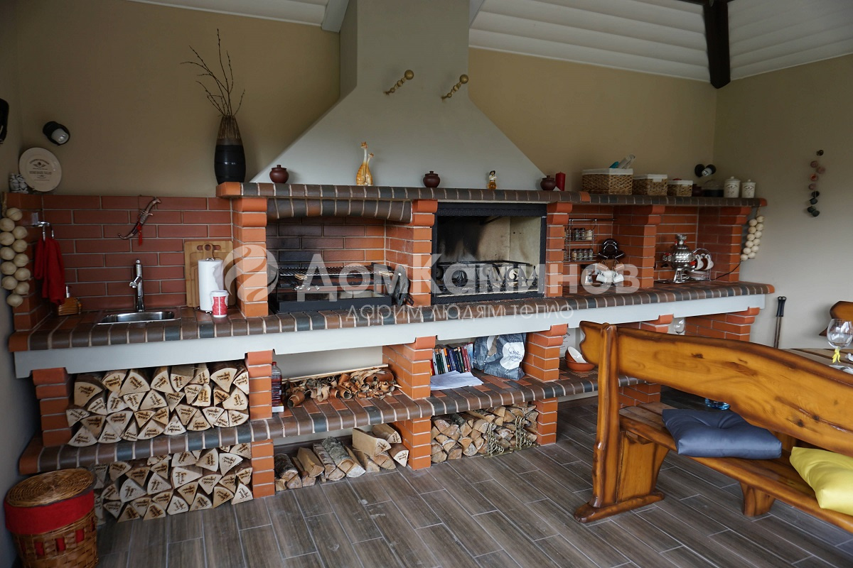 Внутренние поверхности мангала выложены шамотными плитами.