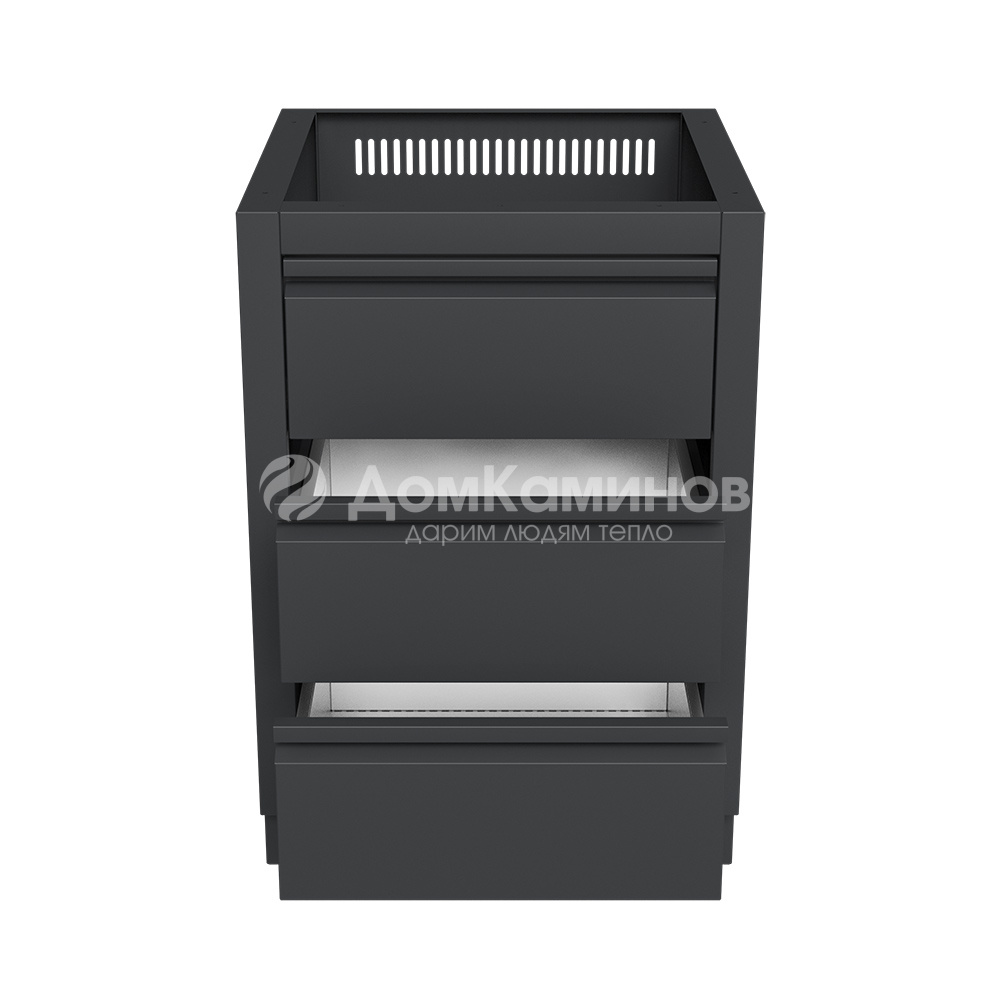 Тумба изготовлена из высококачественной пищевой нержавеющей стали AISI304, окрашенной в матовый черный цвет RAL9004 с текстурой муар.