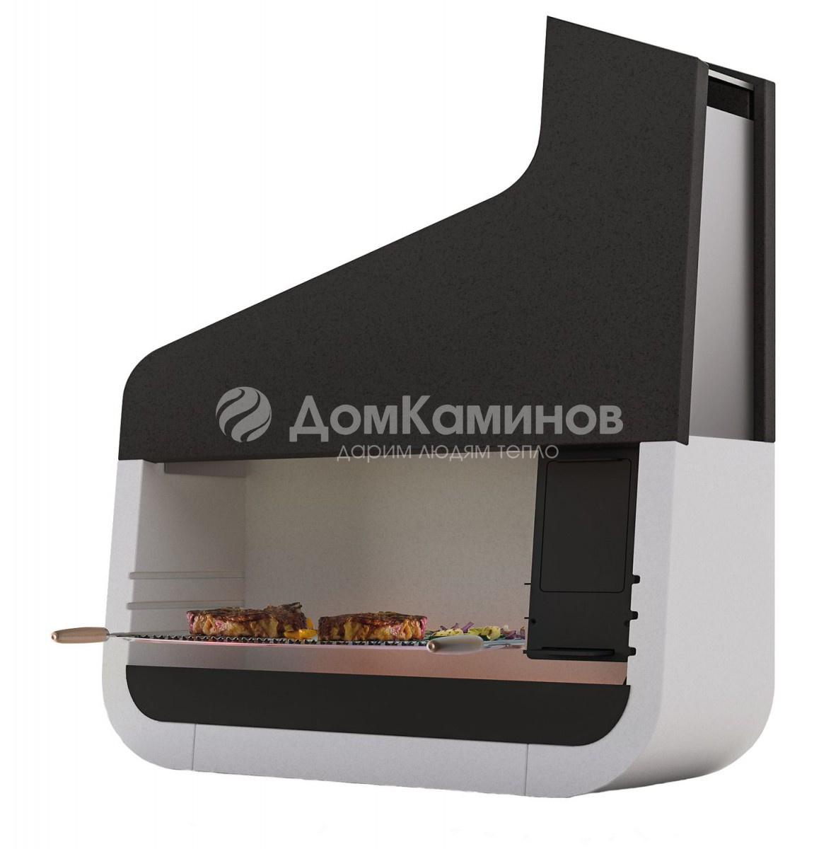 Дизайнерское барбекю (Marcarch design, Italy) с топкой из Marmotech, окрашенной кварцитовой белой краской и колпаком из цветного Marmotech с металлической вставкой.