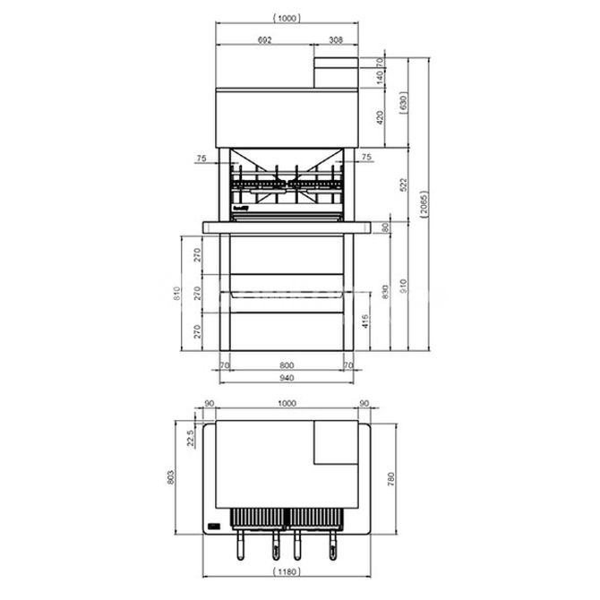 Вмещает две решетки размером 40х45 см. Вытяжка из стали, окрашенной в черный цвет.