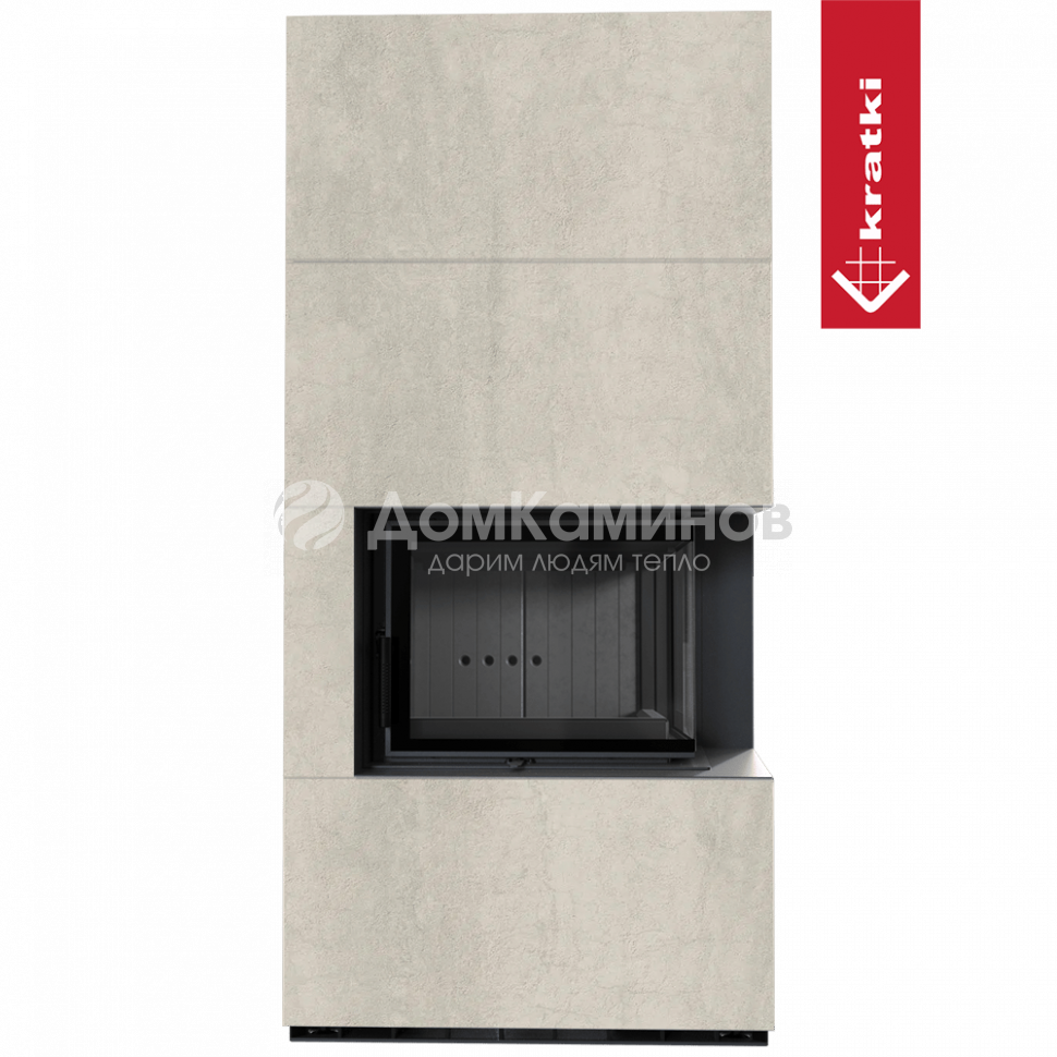 Каминокомплект FLOKI в облицовке NATURALI PIETRA DI SAVOIA PERLA BOCCIARDATA, угловое стекло справа в Краснодаре