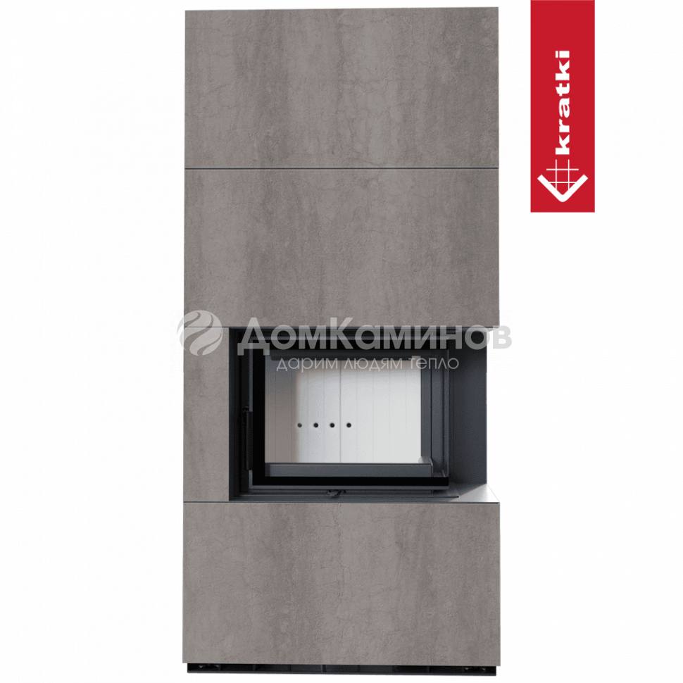 Каминокомплект Kratki PRO FLOKI BOX NATURALI PIETRA DI SAVOIA GRIGIA BOCCIARDATA, угловое стекло справа в Краснодаре