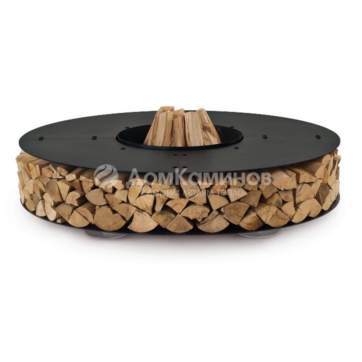 Открытый дровяной очаг для костра 120 см в диаметре и 60 см топкой, с интегрированной дровницей. Стильное и современное решение для вашей костровый зоны. Двойная стенка очага и 5мм сталь обеспечивает долговечность конструкции. Очаг оснащен зольной корзиной из нержавеющей стали, в комплектации предусмотрена крышка, а так же защитный чехол от пыли и атмосферных осадков. В качестве основания для камина предусмотрены опоры выполненные из нержавеющей стали или колесная база (опционально).