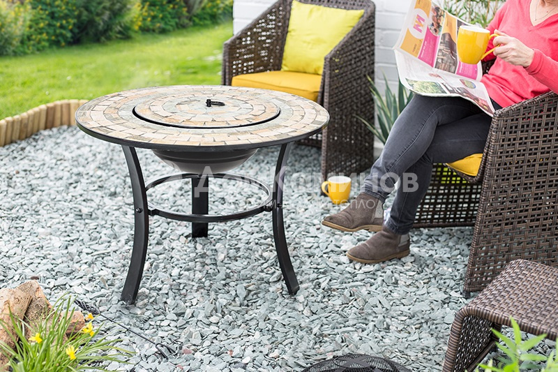 Изготовленный из стали и керамики, богато украшенный мозайкой, очаг Mykonos отлично смотрится в любом открытом пространстве. Комплект дополняется сетчатой крышкой-искрогасителем и хромированной решеткой-гриль. Идеально подходит к любому дизайну пространств.