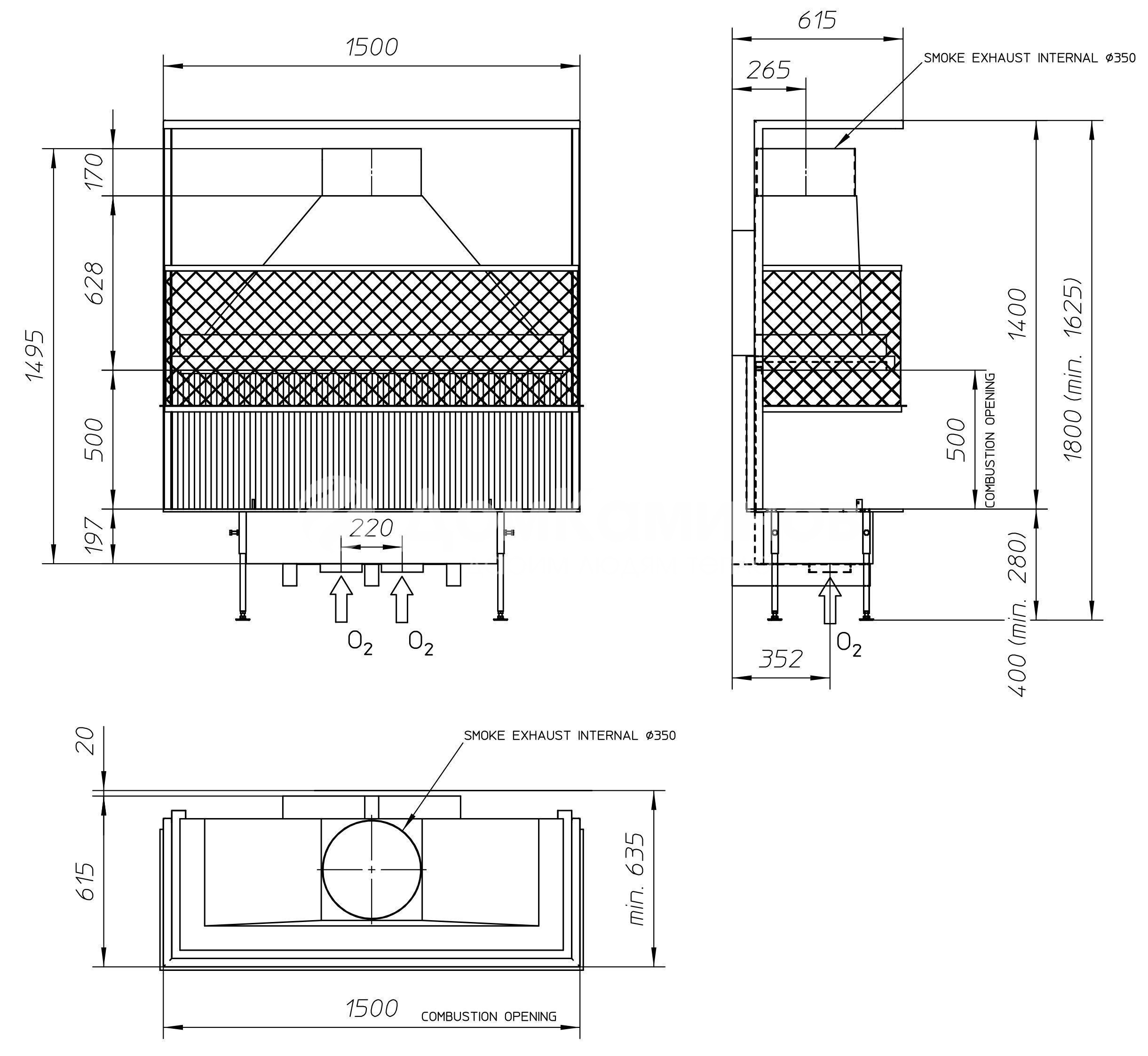 Metalfire Universal MF 1500-50 W 3S — это открытая трехсторонняя топка шириной 1500 мм. Корпус изготовлен из высококачественной стали. Футеровка топочной камеры из чугуна. Модель оснащена сетчатым экраном с подъёмным механизмом и патрубком для подключения приточного воздуха.