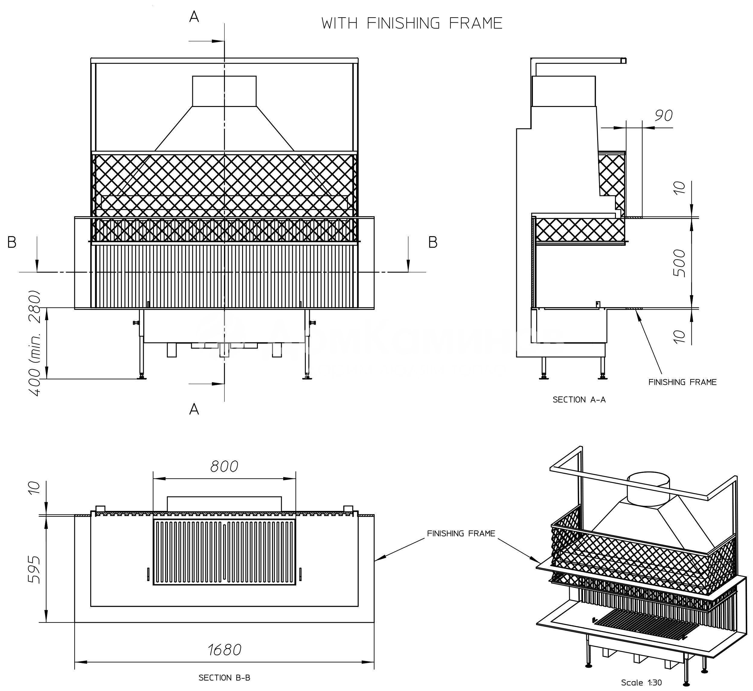 Топка может быть изготовлена по индивидуальным размерам и оснащена адаптационными рамками различных конфигураций, что позволяет идеально интегрировать камин в любое дизайнерское решение.