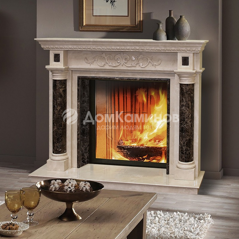 Портал для камина Artevero Harmony изготовлен из мрамора Crema Marfill (бежево кремового цвета, произведенный в Испании) и Emperador (темно-коричневого цвета). Модель Harmony, как и все порталы Artevero, классической формы «П». В комплекте надставка для зеркала или телевизора, доборные пластины для установки топки. Портал для камина Artevero Harmony купить – решают и из-за экономии полезной площади. Так как громоздкая часть (топка) будет установлена в стене, а сам портал займет минимум места в каминном зале или гостиной.