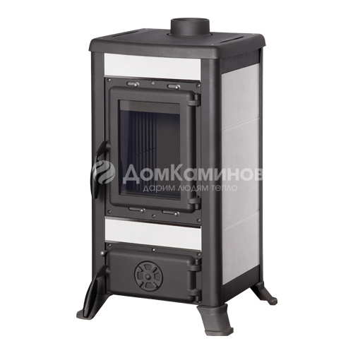 Тепловая мощность печи 8 кВт. КПД 75%. Систем длительного горения, работа в режиме тления до 8 часов. Система обдува стекла. Система сброса золы с колосник. Загрузка дров фронтальная. Диаметр дымохода 120 мм. Расположение дымохода сверху. Отделка антрацит с керамическими вставками белого цвета. Размер стекла 313х221х4 mm. Размер упаковки ДхШхВ: 540х510х950 mm. Гарантия 5 лет.