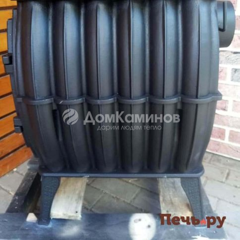 Корпус печи камина Печь Бахта выполнен из чугуна. Чугун термостойкий и недорогой материал. Он слабо расширяется при нагреве, обеспечивает высокую теплоотдачу и мягкое излучающее тепло. Чугунную печь надо ставить дальше от горючих материалов и хорошо изолировать стены. Печи мощные и излучение тепла на расстоянии 1 метра проникающее.