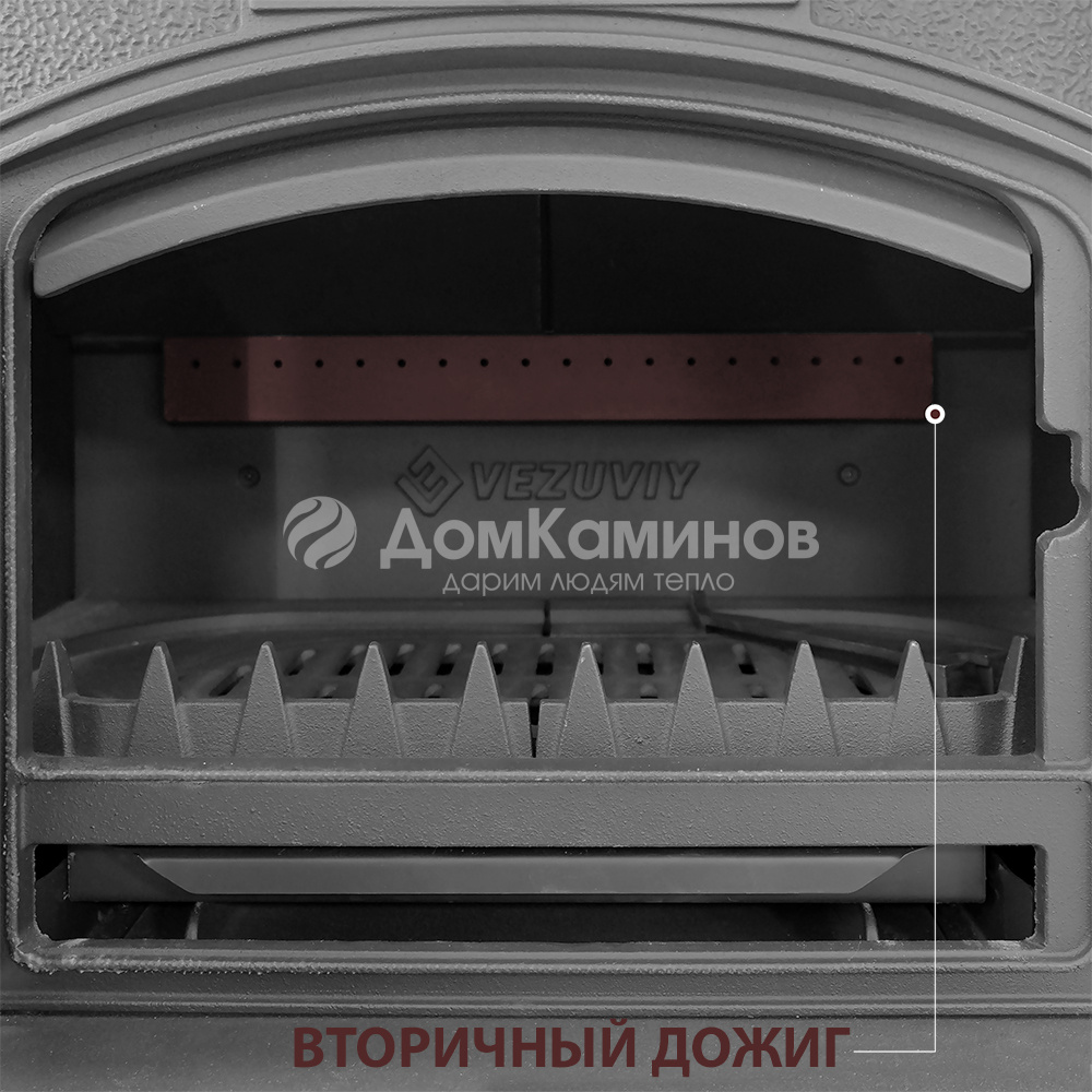 Топка изнутри с двойными стенками, это повышает эффективность печи и защищает топку от прогара. При таких стенках температура внутри выше и дрова сгорают эффективнее.