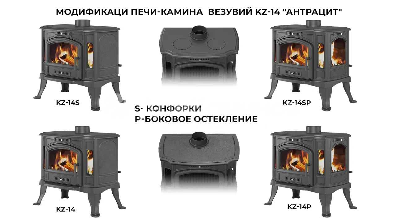 Печь-камин Везувий KZ-14 "Антрацит" диаметр дымохода: 150 мм
