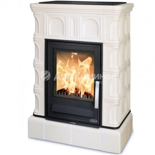 Печь-камин ABX BRITANIA K, с кафельным цоколем, с теплообменником (перламутр)
