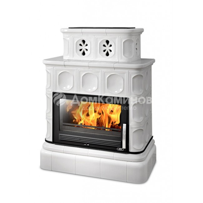 Кафельная печь-камин Karelie с кафельным цоколем, бесспорно, самая красивая и изящная в линейке печей Чешского производителя АВХ. Топка печи изготовлена из стали и облицована внутри вермикулитом, благодаря отражающим качествам которого, поддерживается высокая температура горения. Печная фурнитура: передняя рама, топочная дверь, колосниковая решетка, все они изготовлены из стали. Достаточно большая мощность модели (10 кВт) позволяет отапливать помещения объемом до 240 м3. Относительно небольшие габаритные размеры печи позволяет расположить ее в помещении площадью от 25 м2. КПД кафельной печи – 77%. За счёт встроенной технологии двойного дожига, каминное топливо сгорает практически без остатка. Красивый кафель украшает модель и надёжно удерживает тепло. Для украшения печи изразцы покрыты блестящей глазурью. Снизу герметичной дверцы находятся ручки регулировки подачи воздуха в камеру сгорания. Одна закладка дров может гореть около 6 часов. Быстрый нагрев помещения достигается техническими особенностями топки печи и ее облицовки. Известно, что кафель способен долгое время аккумулировать тепло, выдерживать резкий перепад температур, долговечен, менее подвежен старению. Топка печи Karelie оснащена системой "чистое стекло". Обдув внутренней поверхности стекла горячим вторичным воздухом не позволяет оседать на ней пеплу и саже. Большой спектр цветов, позволит подобрать подходящий вариант. Данная модель будет не только согревать дом, но и станет ее главным украшением.