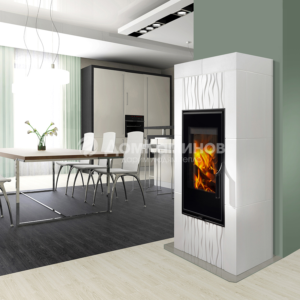 Каминная печь «DOLO 1 » на фотографии имеет керамическую облицовку в матовой глазури 90901.