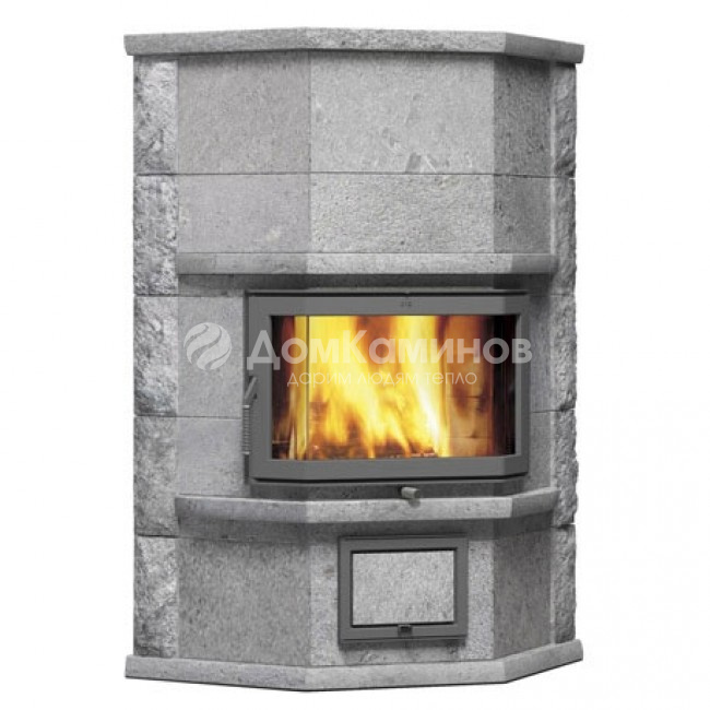 Угловой печь-камин с задним нижним подключением 2 теплового класса, для больших помещений.