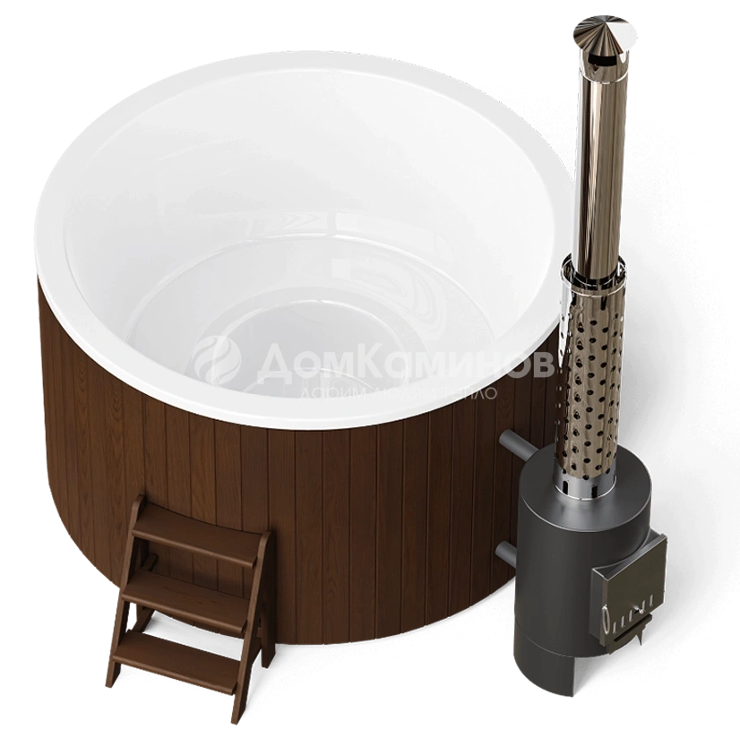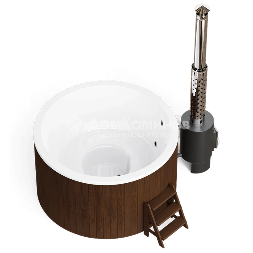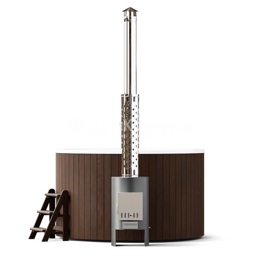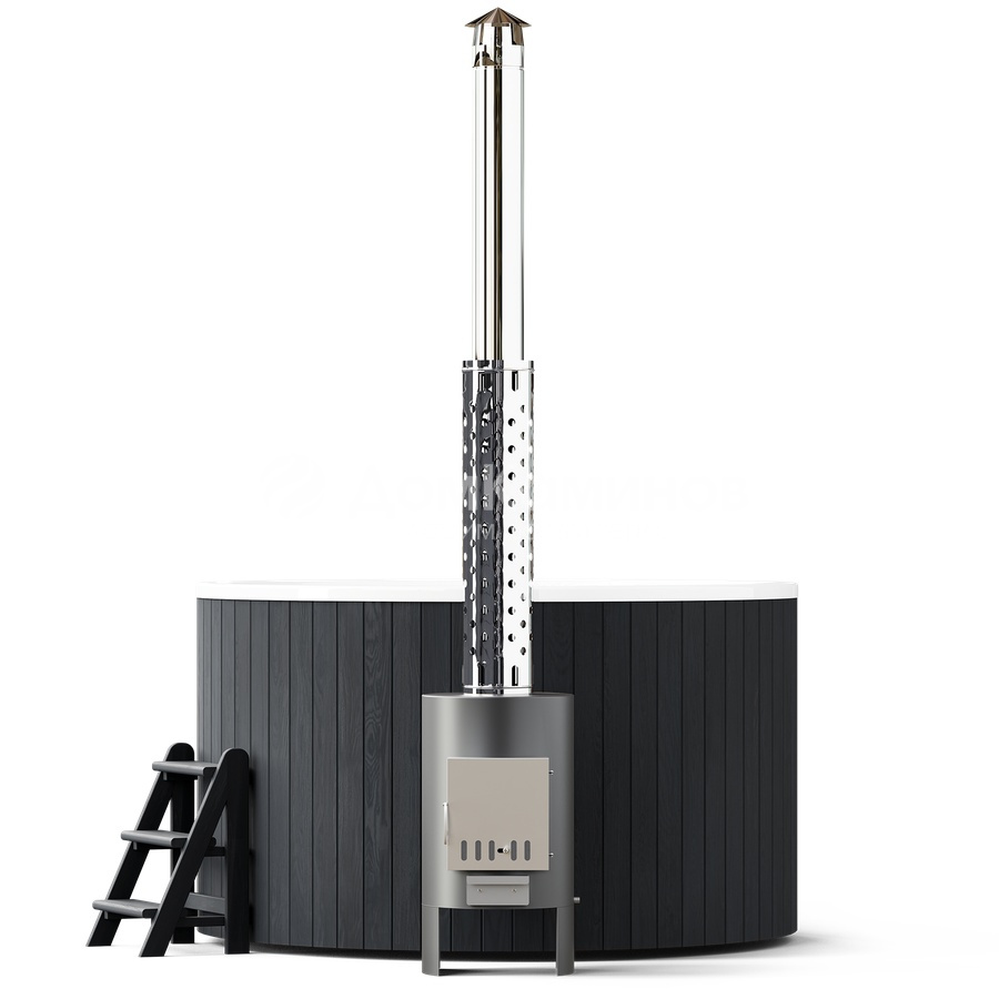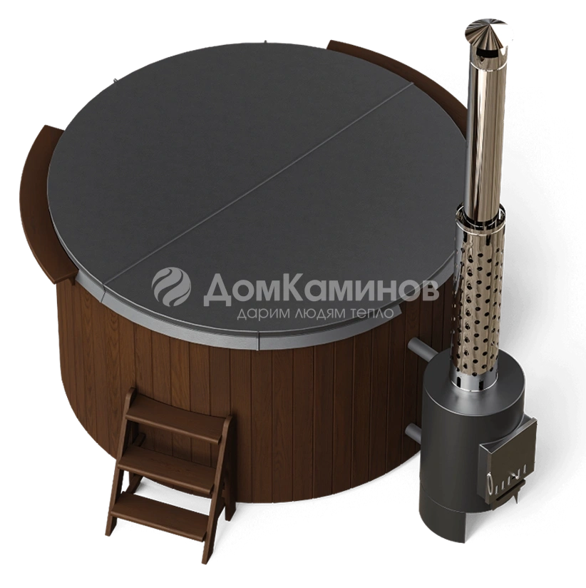 Внешняя печь мощностью 40кВт нагреет воду до комфортной температуры за 1,5-2 часа.Остается зажечь свечи, добавить в воду масло лаванды, включить приятную музыку и наслаждаться релаксом.