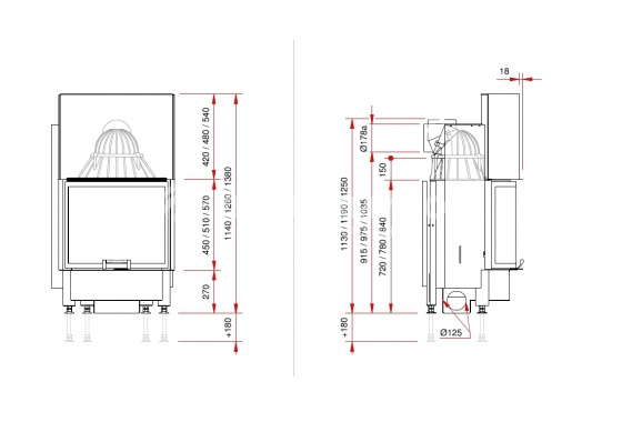 Диаметр дымохода: 180 мм