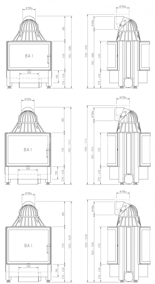 Различные варианты оформления дверных рамок: антрацит, позолота, хром. Дверца с двойным стеклом обеспечивает наибольший комфорт при эксплуатации. Поглощает 30% лучистой энергии. Два варианта открытия дверцы: открытие вправо и влево у топок, обозначенных «s» (пример Lina 6757s), открытие вверх и в сторону для прочистки стекла, обозначенных «h» (пример Lina 6757h).