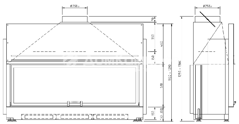 Диаметр дымохода — Ø 300 мм.