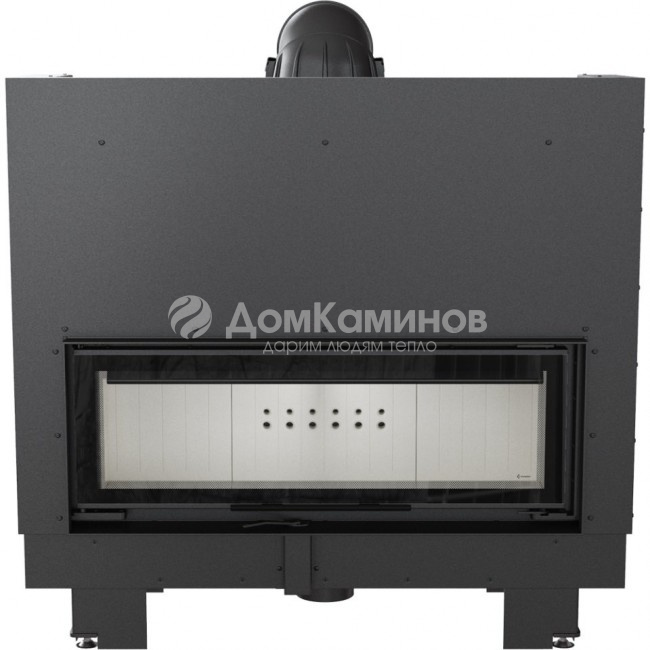 Внутренняя часть камина выложена керамическим огнеупорным материалом, который накапливает тепло, и повышает температуру в камере сгорания. Это помогает улучшить показатели процесса горения. На задней стенке топки имеются отверстия - система дожигания газов, через каналы в корпусе подается дополнительный воздух в камеру сгорания. Дефлектор из вермикулита увеличивает путь дымовых газов и увеличивает теплоотдачу. Для большей теплоотдачи в дымосборнике расположены специальные сквозные отверстия. В нижней части есть воздушный адаптер для подачи воздуха с улицы. Контроль интенсивности горения контролируется удобным регулятором, который размещен в нижней части дверки. Верхняя часть патрубка изготовлена из чугуна и является подвижной для облегчения монтажа. Корпус камина Kratki MB100 G имеет регулируемые по высоте ножки.