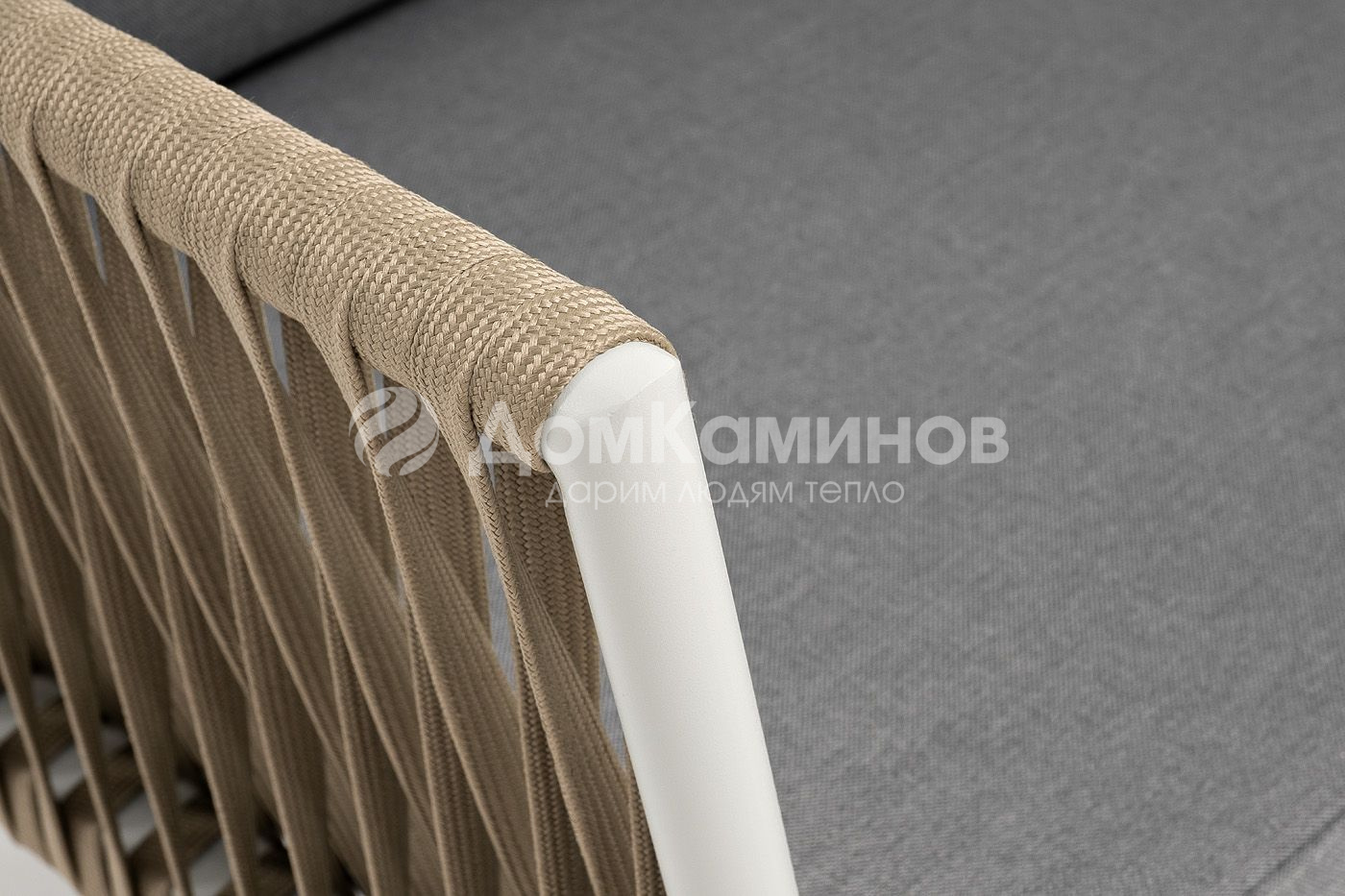 Диван 4SIS Касабланка 2-местный из роупа, каркас алюминий светло-серый (RAL7035) муар, роуп серо-коричневый 23 мм, ткань серая 017