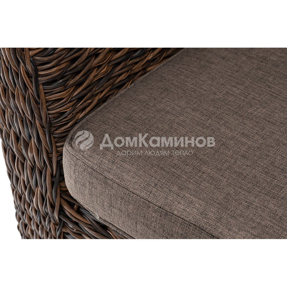Диван «Капучино» двухместный с каркасом из прочного алюминия.Размер модели – 1700×850×810мм.Диван выполнен из искусственного ротанга вида "гиацинт" соломенного цвета, оплетенного вручную.Двухместный диван дополнен несколькими подушками со съемными темно-серыми чехлами. Они изготовлены из прочного полиэстера, плотность которого достигает 230гр/м2. Предусмотрена влагоотталкивающая пропитка ткани для защиты текстильных изделий от намокания.