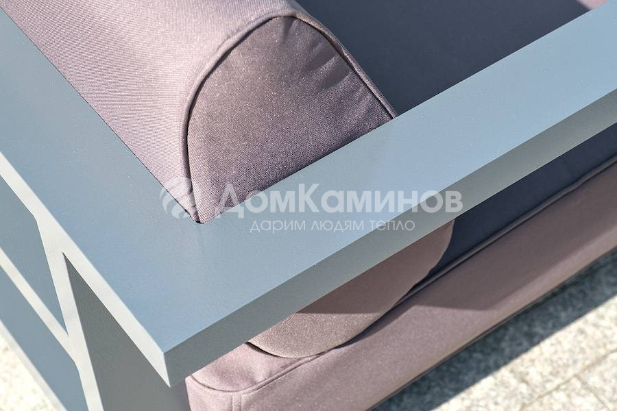 Каркас мебели выполнен из алюминиевого профиля, окрашенного в темно-серый (RAL7024) цвет. Дополняют комплект подушки со съёмными чехлами.