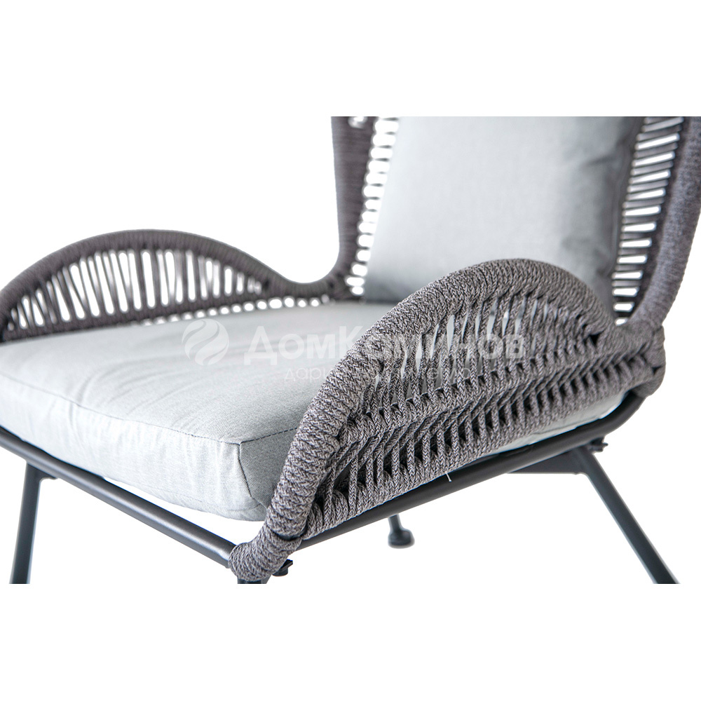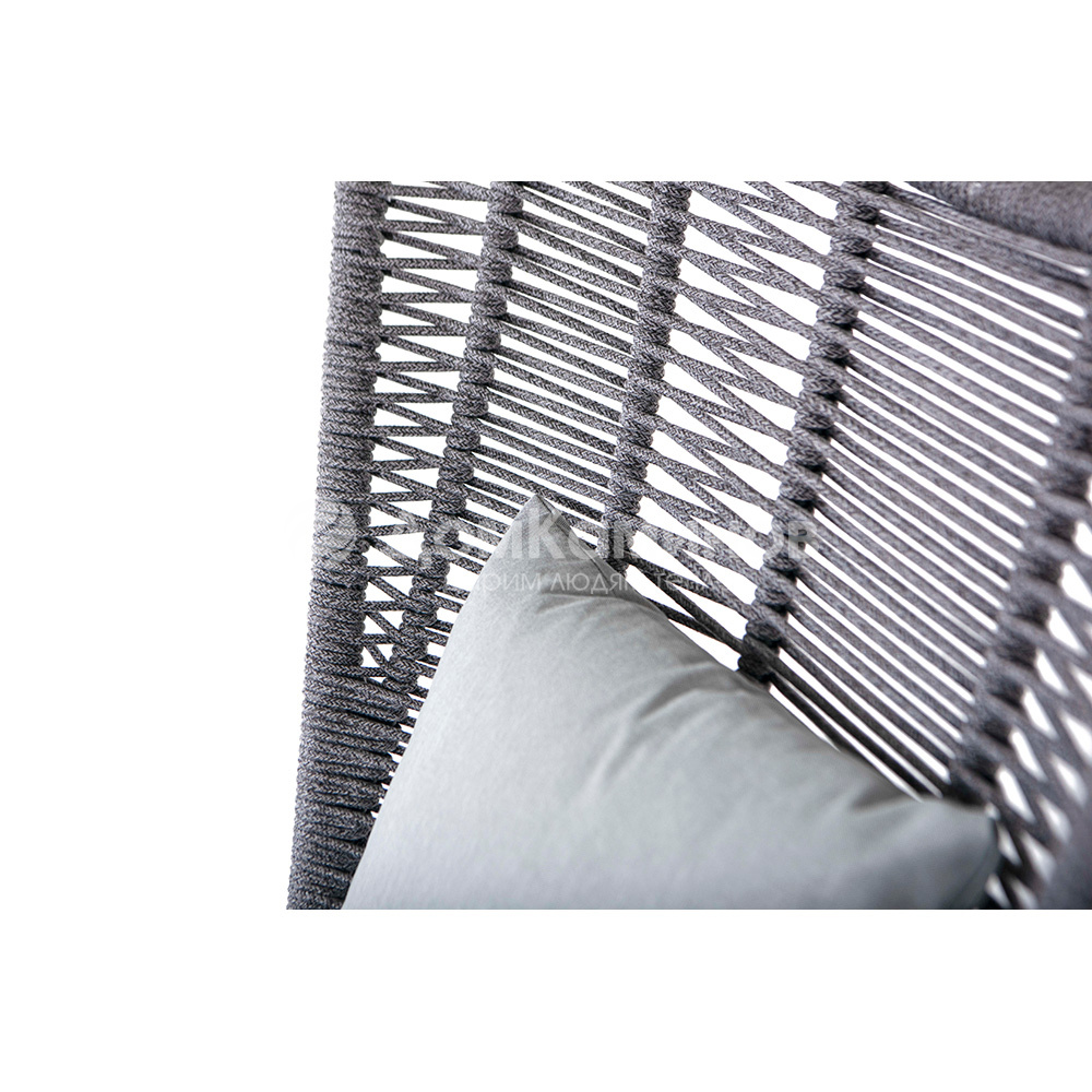Кофейная группа "Мадрид": 2 кресла из алюминия, оплетенного синтеческим полиэфирным волокно, в комплекте с подушками, цвет темно-серый, кофейный стол, алюминиевый каркас, стеклянная матовая столешница толщиной 5 мм.