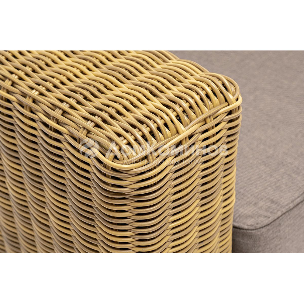 Кресло из искусственного ротанга «Боно» станет прекрасным дополнением к месту отдыха.Кресло оснащено каркасом из прочного алюминия, ручное круглое плетение является основным декоративным элементом мебели. Оно выполнено из искусственного ротанга в соломенном цвете.В комплектацию входят мягкие подушки для комфортного расположения. Чехлы съемные серо-коричневого цвета из высококлассного полиэстера с плотностью 230гр/м2. Габариты модели составляют 1000×900×775 мм, толщина подушки: 150 мм, вес: 23 кг.