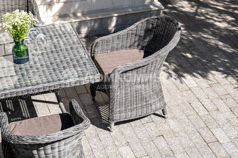 Кресло из искусственного ротанга из коллекции «Равенна» сочетает в себе домашний уют, современный стиль и природные мотивы.Кресло изготовлено вручную. Каркас алюминиевый, а сверху он оплетен круглым искусственным ротангом бежевого оттенка.В комплект включена мягкая подушка темно-серого цвета. Благодаря такой расцветке кресло идеально вписывается в любой интерьер, а также сочетается с другой мебелью, выполненной в натуральных оттенках. Дизайнерское кресло подойдет и для помещений, и для эксплуатации под открытым небом.