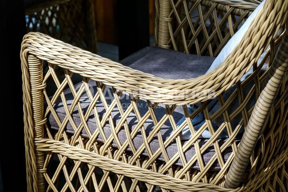 Кресло из искусственного ротанга "Латте" отлично подходит для зоны отдыха на открытом пространстве.