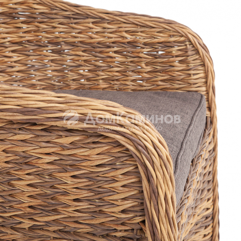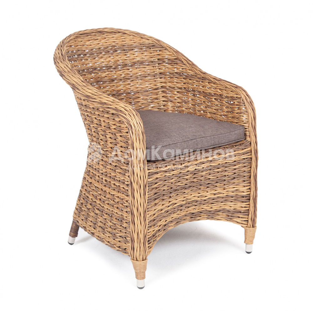 Кресло для сада из искусственного ротанга c плетением вида "гиацинт" из коллекции «Равенна» станет поистине украшением вашего сада, веранды или террасы. Его можно использовать в помещении и на улице.Кресло изготовлено посредством ручного плетения и выполнено из круглого искусственного ротанга соломенного цвета. Для укрепления конструкции использован алюминиевый каркас. Благодаря ему плетеное кресло остается легким, но прочным.Оно способно выдержать до 150 кг. Размеры: 680х570х810 мм. В комплект включена серая подушка со съемным чехлом из полиэстера, который обработан влагоотталкивающими пропитками. Чехол можно стирать.