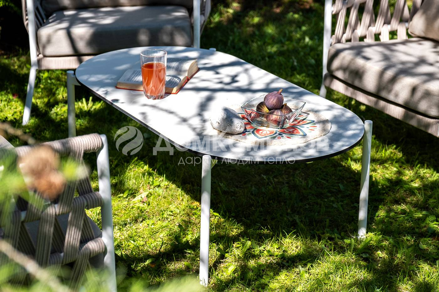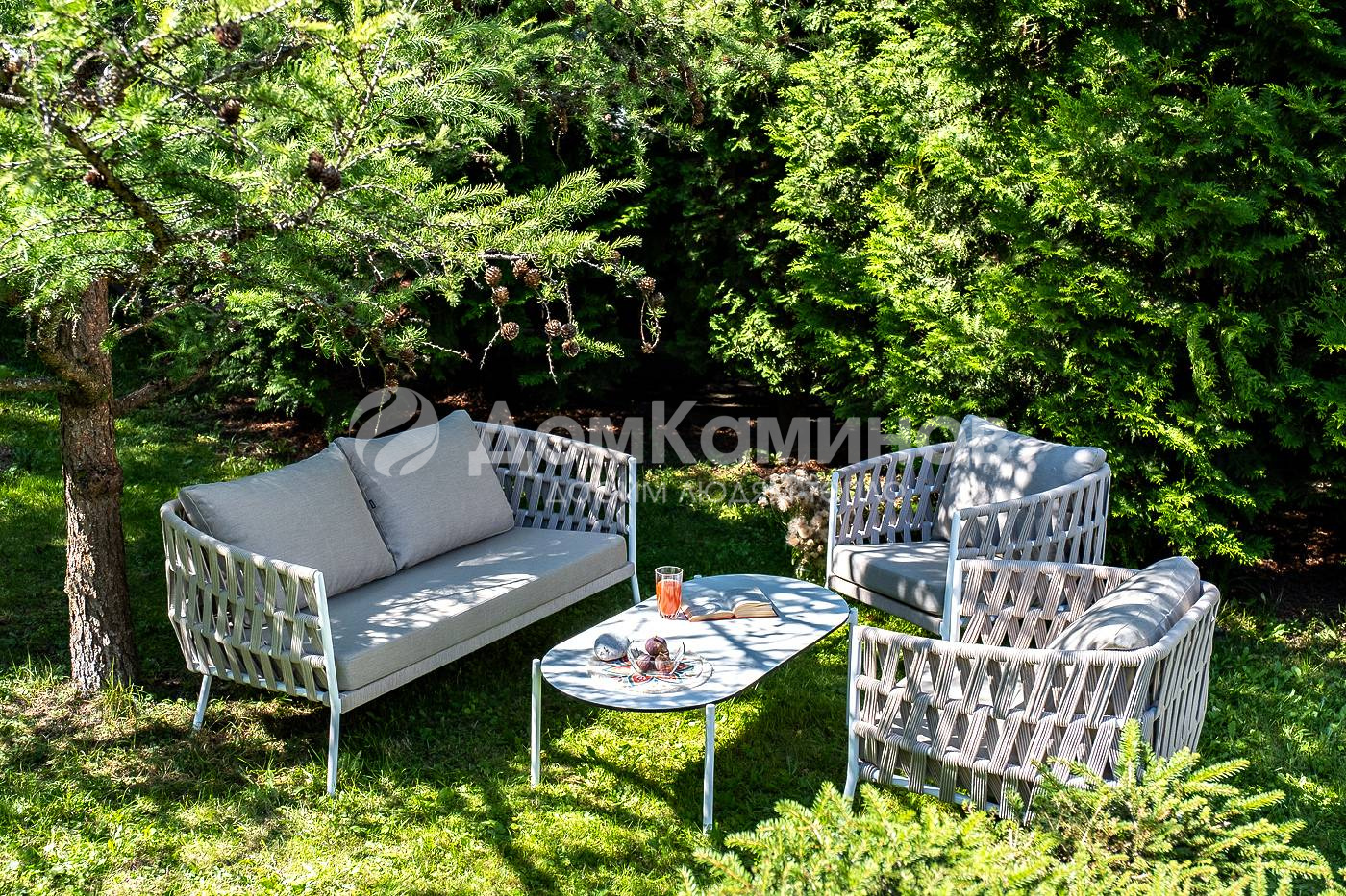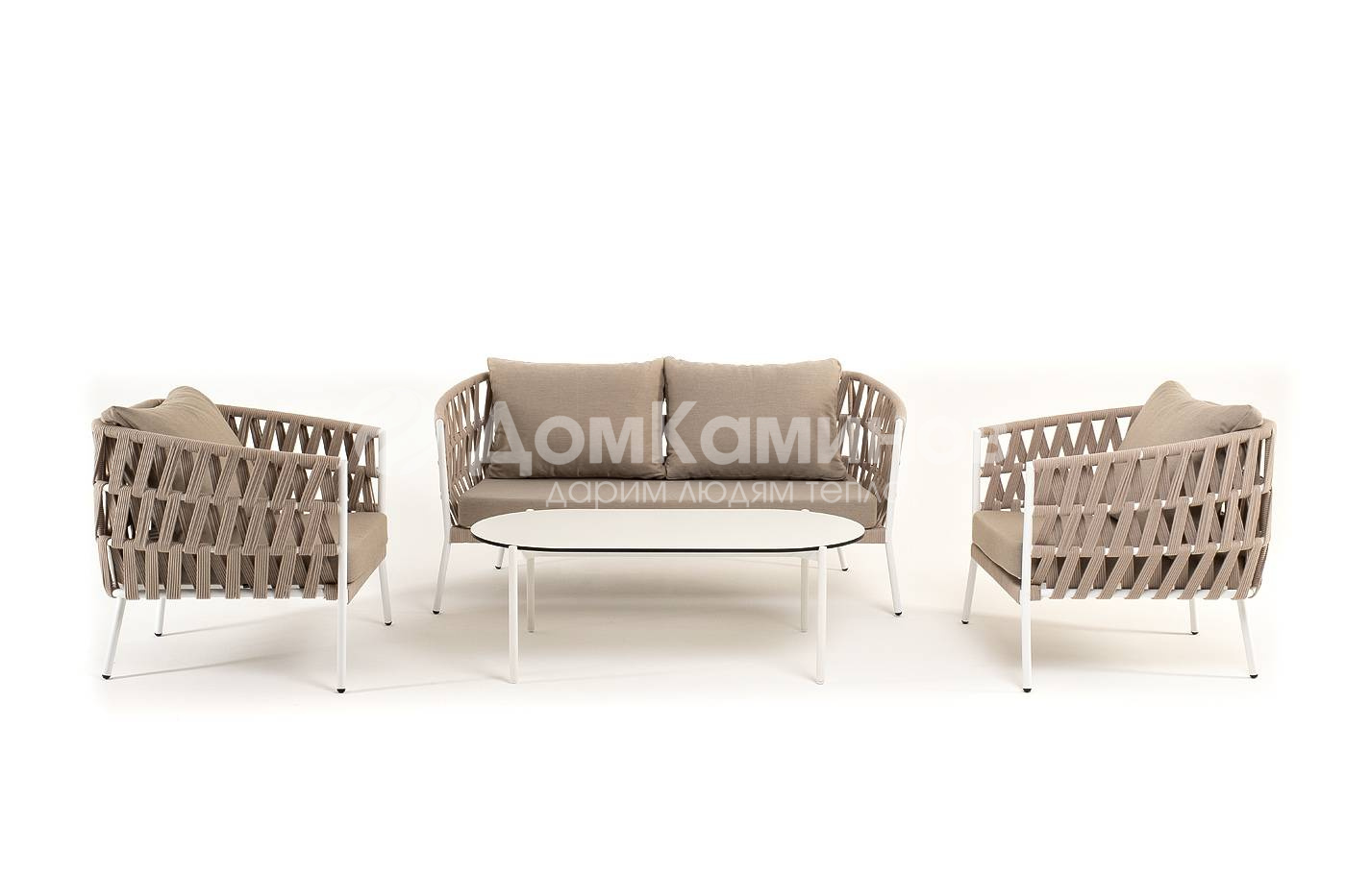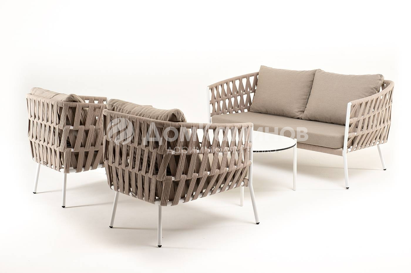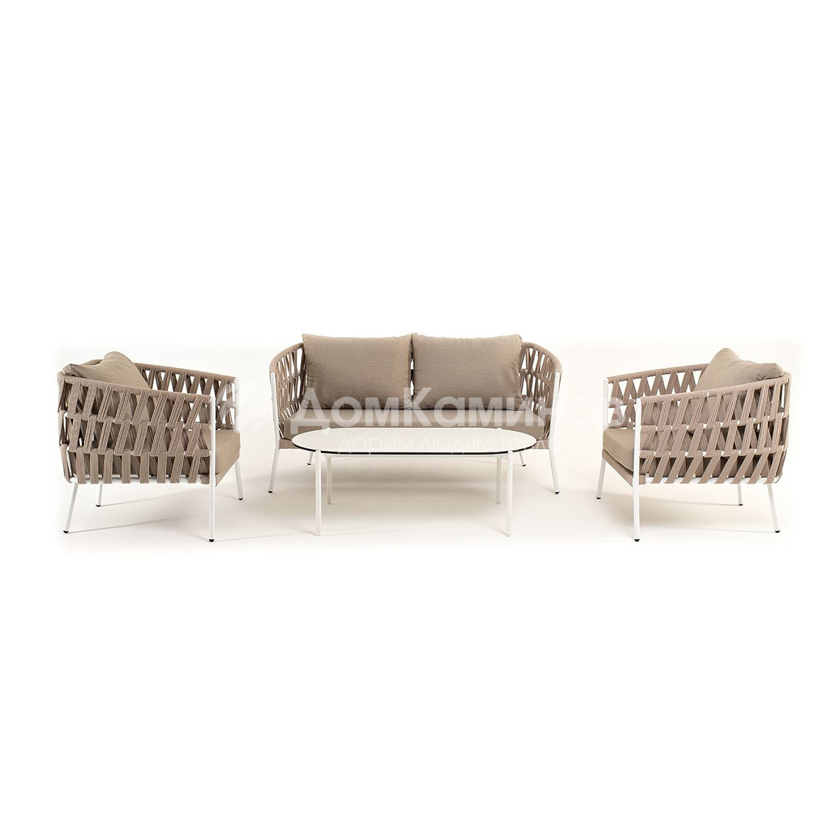 Лаунж-зона 4SIS Диего 4-местная, каркас алюминиевый белый, роуп бежевый