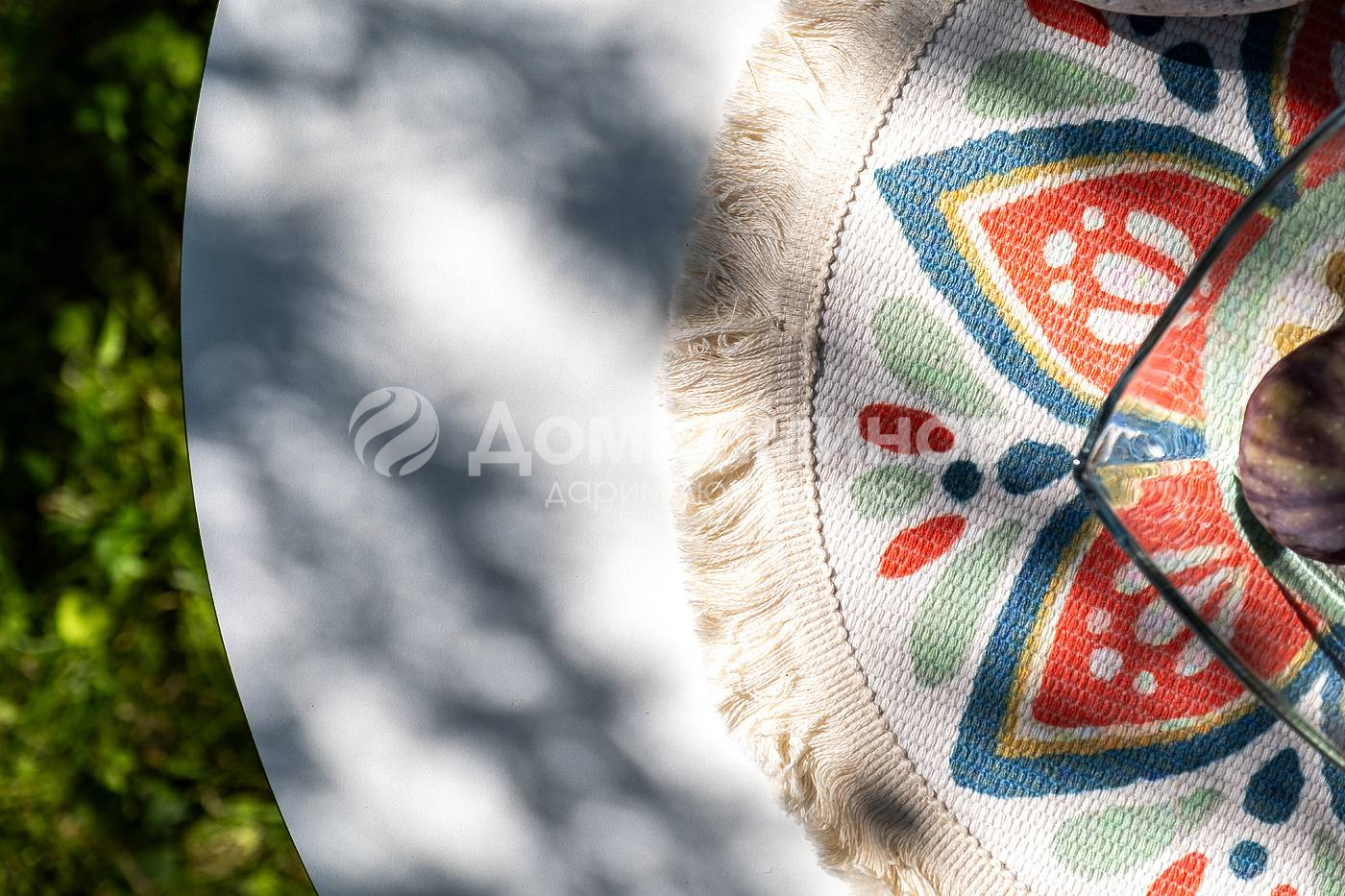 Каркас уличной мебели выполнен из дуба. Его дополняет бежевая оплетка, изготовленная на основе эластичных синтетических лент из полиэфирных волокон высокой прочности.