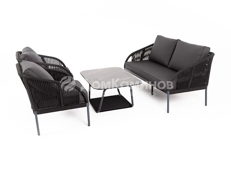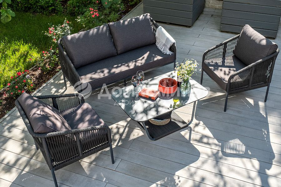 Лаунж-зона 4SIS Канны 4-местная из роупа со столиком Канны Цвет: темно-серый, серый гранит