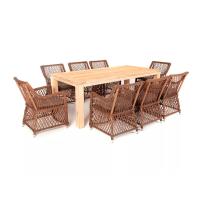 Обеденный садовый стол «Витория» из прочного натурального тикового дерева. Мебель ручной работы с максимальным сохранением естественного рисунка дерева. Цвет – натуральный с характерным природным узором. Поверхность обработана специальным антикоррозийным средством, предотвращающим образование плесени.